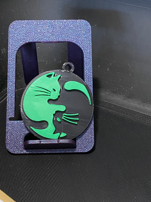 Two Cat Ying Yang Keyring - 45980.200 Black & Green